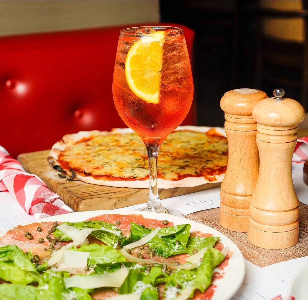 La propuesta inicia con dos entradas a elección, entre opciones como nachos de chicharrón con guacamole y pico de gallo, quesadilla de ropa vieja con fondue de queso, envoltinis de berenjena gratinados con prosciutto, carpaccio de res con hongos y parmesano, chorizo al vino tinto o una delicada burrata horneada con tomate fresco y vincotto.